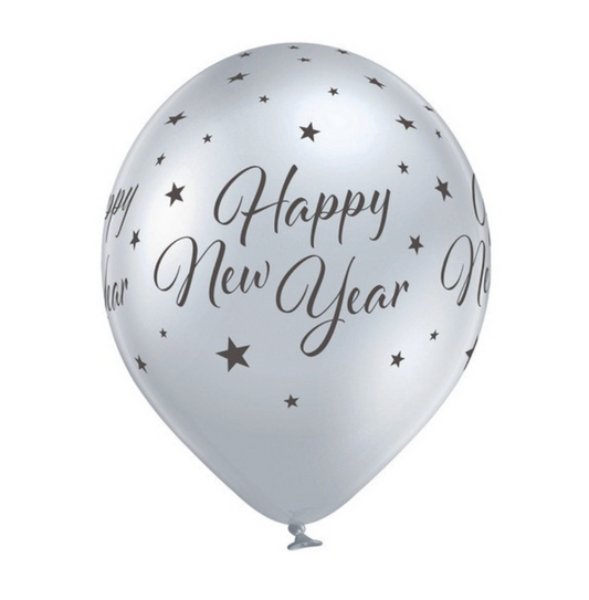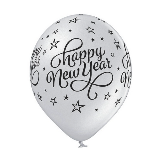 Latex blaðra - Gleðilegt nýtt ár - Silfur - 30 cm