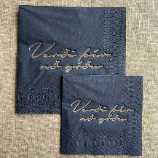 Servíettur - Verði þér að góðu - Svartar m. gull - 24 x 24cm - 20 stk