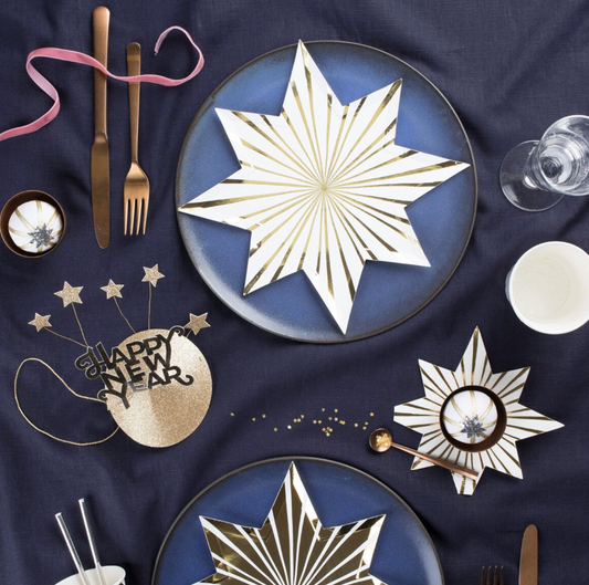 Servíettur - Stjarna - Gyllt og hvít - 16 stk