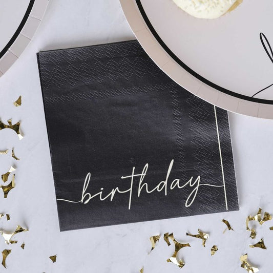Servíettur - Svartar og nude - Happy birthday - 16 stk