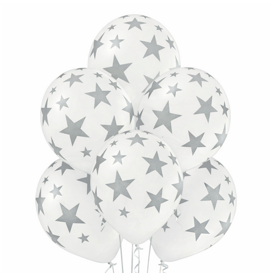 Latex blaðra - Hvít með silfur stjörnum - 30 cm