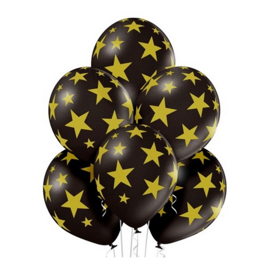 Latex blaðra - Svört með gylltum stjörnum - 30 cm