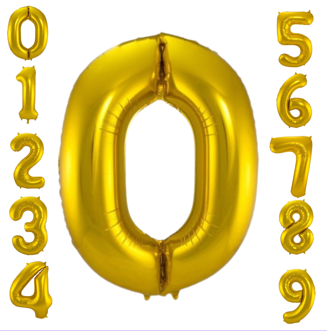 Gylltir álblöðru tölustafir frá 0 - 9. Hægt er að fá blöðruna með eða án helíum.