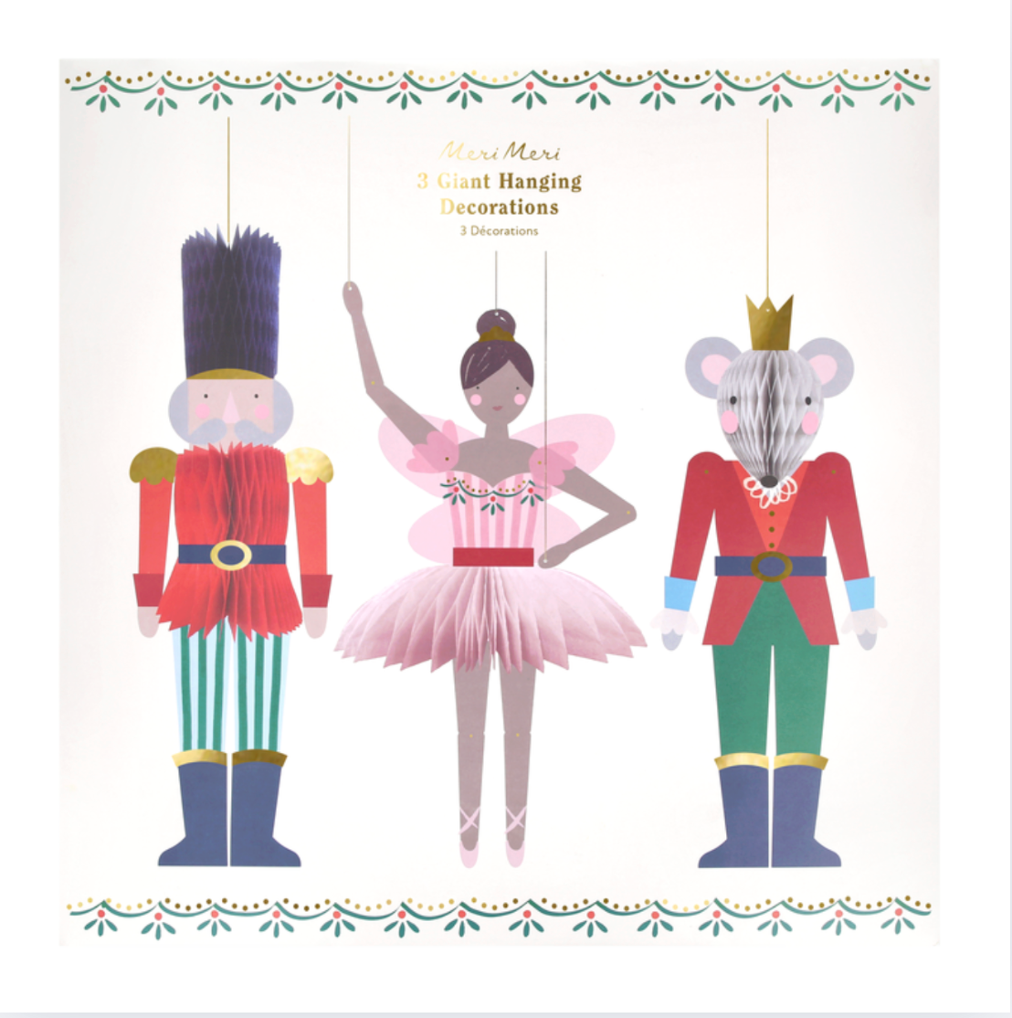 Fallegar og stórar hangandi jólaskreytingar innblásnar af Hnotubrjótinum ( The Nutcracker) sem hægt er að nota aftur og aftur.