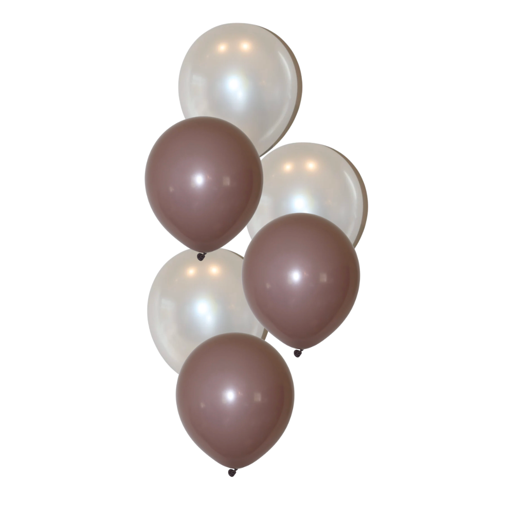 Helíum blöðrubúnt - Hvitt og brúnt - 6 blöðrur