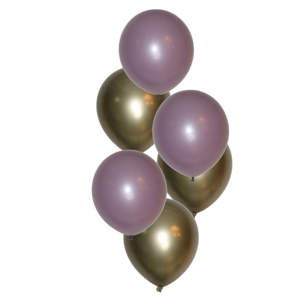 Helíum blöðrubúnt - Ryk bleikt og gyllt - 6 blöðrur