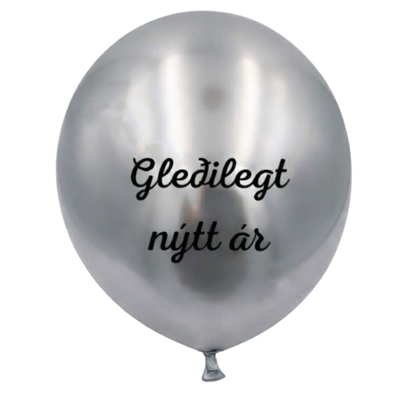 Latex blaðra - Gleðilegt nýtt ár - Silfur - 30 cm