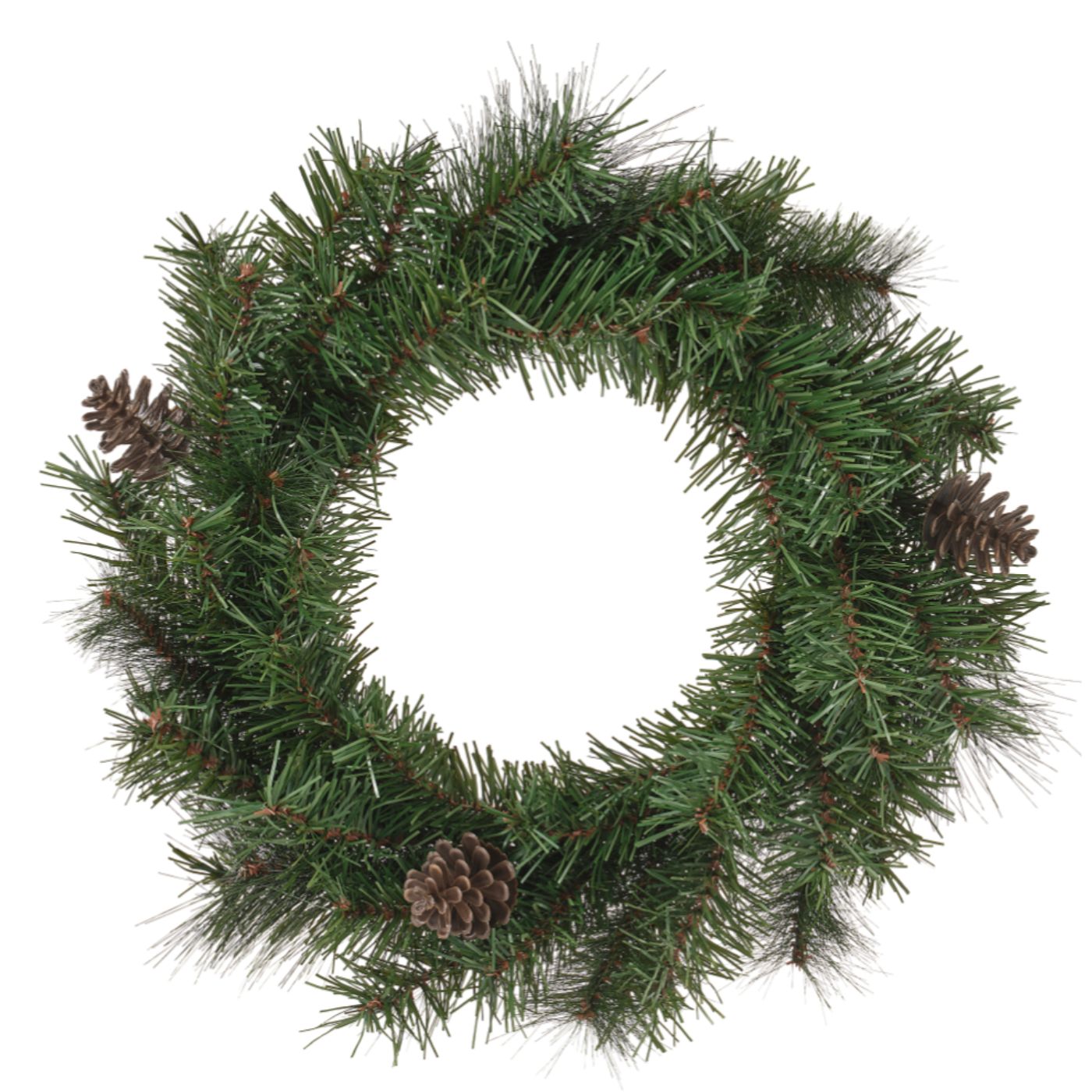 Fallegur grænn krans sem skapar hlýlega og hátíðlega stemningu á borðum, veggjum eða hurðum. Kransinn er úr gervigreinum með náttúrulegum könglum sem gefa honum lifandi útlit og hentar hann fullkomlega á jólahlaðborð, veislur, fyrirtækjapartý eða aðrar hátíðlegar uppákomur.