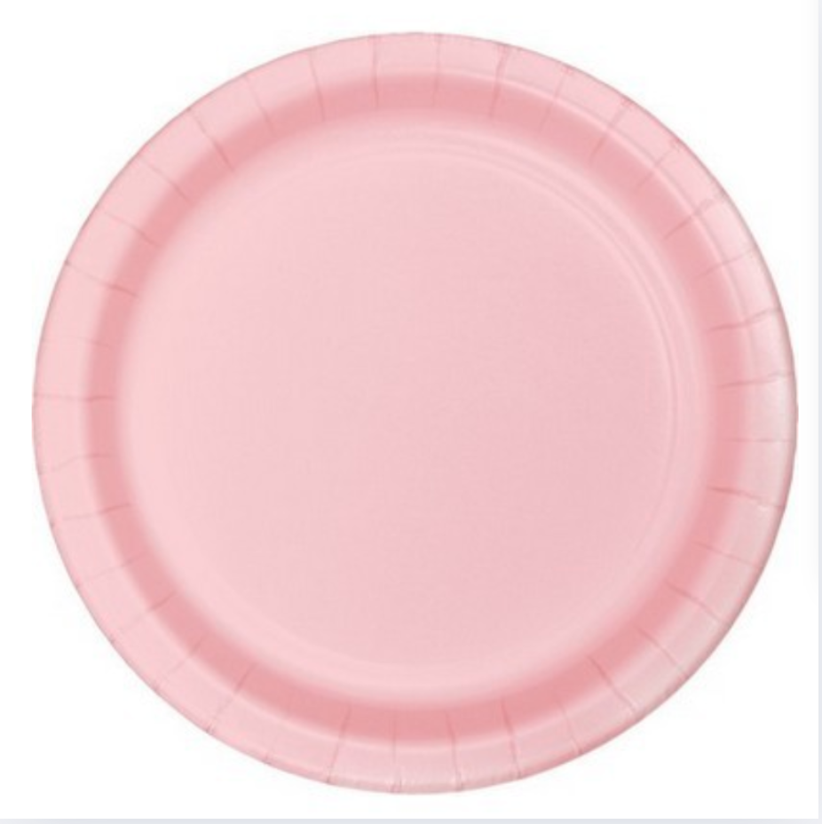 Ljósbleikir pappadiskar. Koma 8 stykki saman í pakka. Stærð: 22,2 cm.