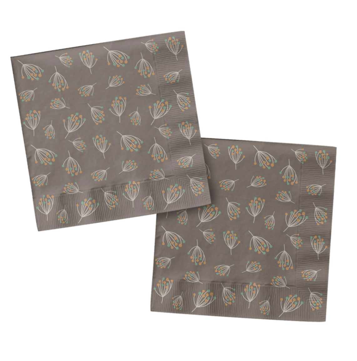 Fallegar dökkbrúnar servíettur. Koma 20 saman í pakka. Stærð: 33 x 33 cm. Servíetturnar eru búnar til úr FSC pappír.