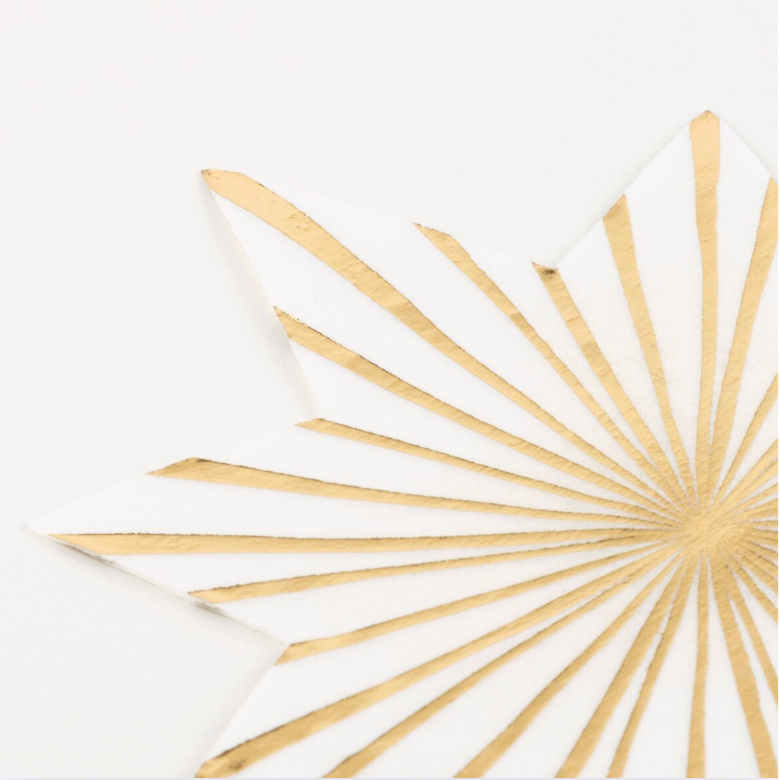Servíettur - Stjarna - Gyllt og hvít - 16 stk